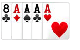 FOUR OF KIND : kartu terkuat ke 3 dalam permainan poker. Kombinasi kartu ini hanya membutuhkan 4 angka yang sama. Misal : As �C As �C As ♠ �C As ♣ �C 10 ♣ atau 8 ♣ �C 8 �C 8 �C 8 ♠ �C 1